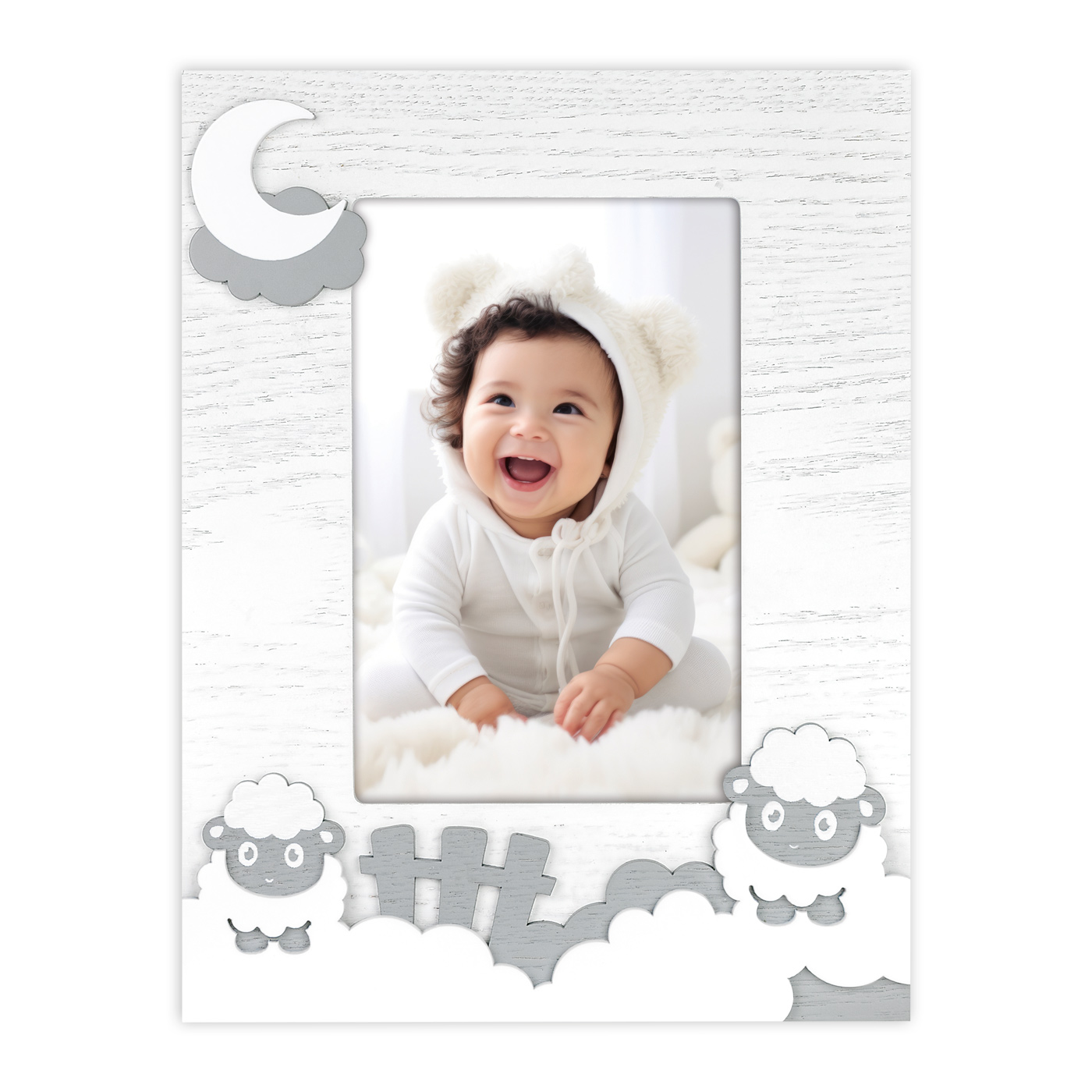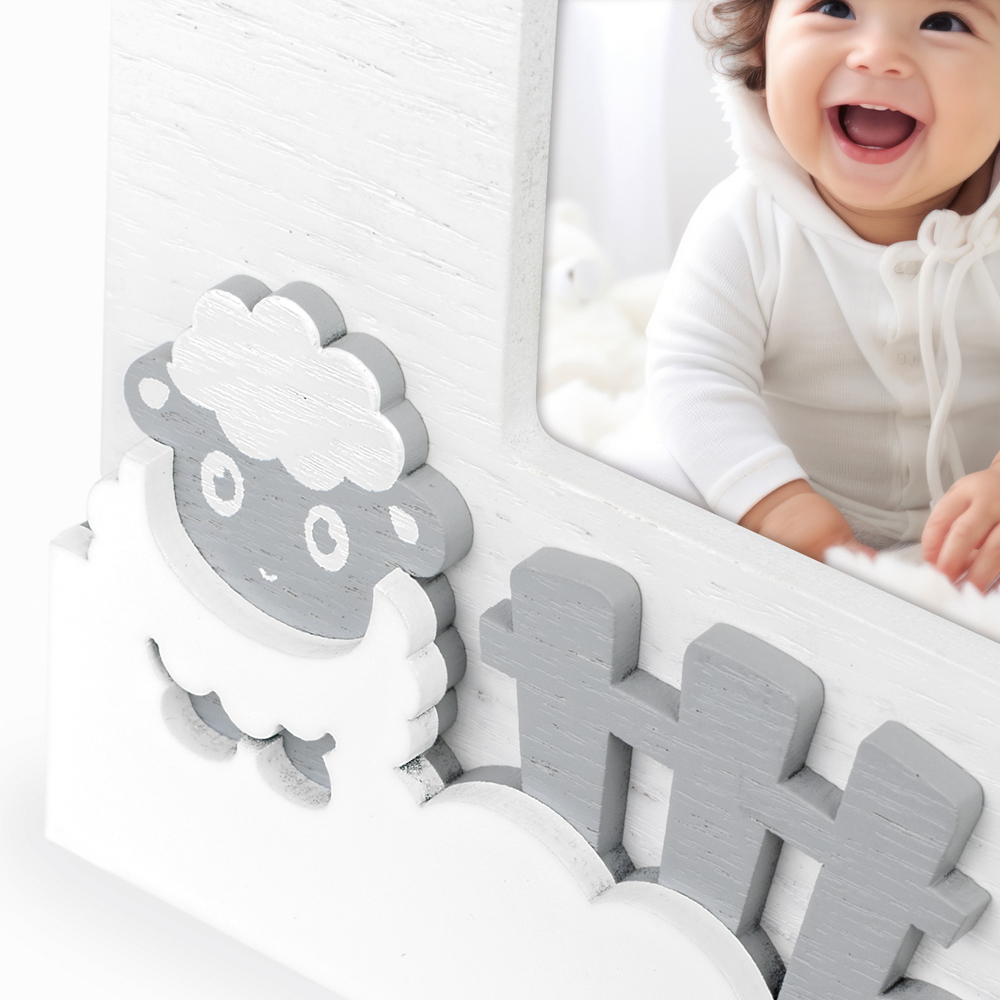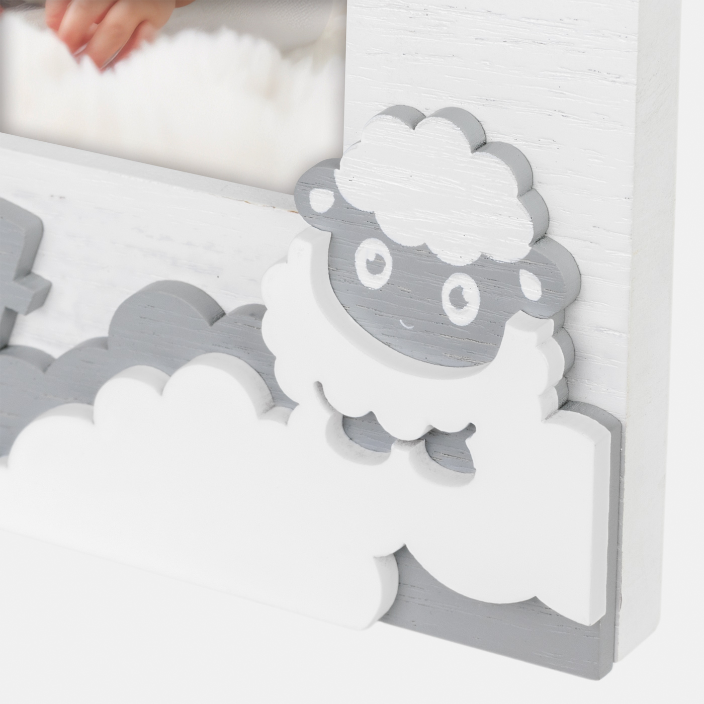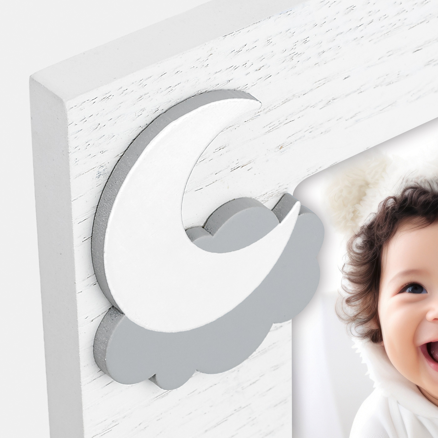 £15.95Wooden Cloud frame, white and grey, with embossed decorations in the shape of a sheep and moon, for the table, ideal for celebrating the birth, suitable for a child, baby-themed, original gift idea.